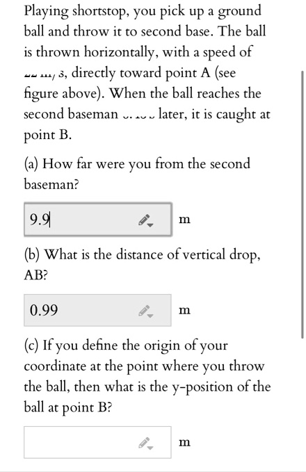 When the ball reaches the second baseman 0 41 s later it is caught at point B Part A How far were you from the second baseman. Playing shortstop you pick up a ground ball and throw it to second base. Playing shortstop you pick upa ground ball and throw it to second base.