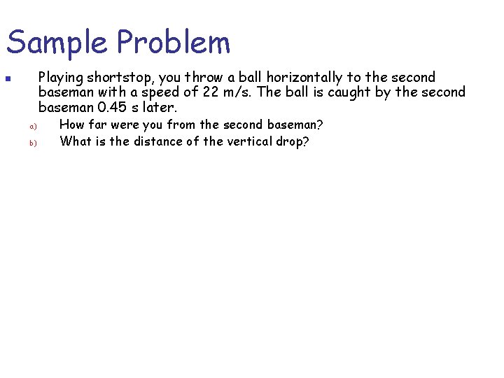 Correct answer to the question Playing shortstop you pick up a ball and throw it to second base. B What is the distance of vertical drop. A How far were you from the second baseman.